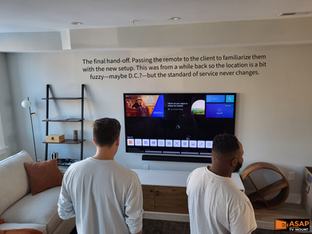 Stop guessing and start watching. At ASAP TV MOUNT, we aren't experimenting on your walls. We aren't amateur gig workers; we are career professionals with years of proven experience in Audio-Video installations, specifically TV and Soundbar installation. We deliver the picture-perfect finish you deserve by guaranteeing optimal height, laser-level precision, rock-solid security, and the cleanest look possible.